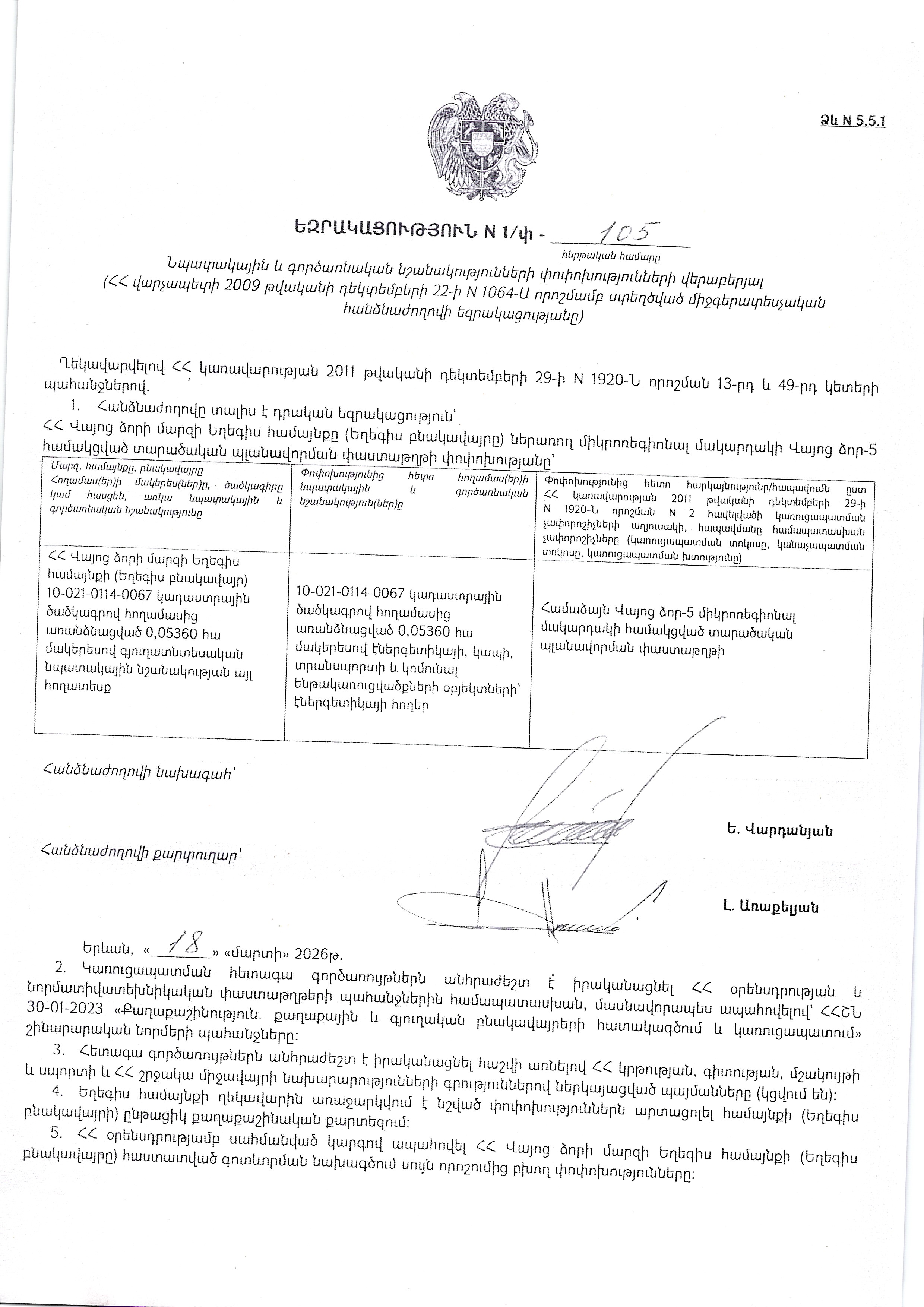 Ղեկավարվելով «Տեղական ինքնակառավարման մասին» Հայաստանի Հանրապետության օրենքի 18-րդ հոդվածի 1-ին մասի 29-րդ կետի, Հայաստանի Հանրապետության «Հողային օրենսգրքի» 3-րդ հոդվածի 1-ին մասի, 7-րդ հոդվածի, Հայաստանի Հանրապետության Կառավարության 29.12.2011թ. «Հայաստանի Հանրապետության համայնքների (բնակավայրերի) գլխավոր հատակագծերի, համակցված տարածական պլանավորման փաստաթղթերի և բնակավայրերի տարածքների գոտեվորման նախագծերի մշակման, փորձաքննության, համաձայնեցման, հաստատման ևփոփոխման կարգը հաստատելու և Հայաստանի Հանրապետության կառավարության 2003 թվականի մայիսի 2-ի N 609-Ն, 2010 թվականի մարտի 4-ի N 208-Ն ու Հայաստանի հանրապետության կառավարության 2001 թվականի մայիսի 14-ի N 408 որոշումներն ուժը կորցրած ճանաչելու մասին» թիվ 1920-Ն որոշման պահանջներով և հիմք ընդունելով «Հայաստանի Հանրապետության համայնքների (բնակավայրերի) քաղաքաշինական ծրագրային փաստաթղթերի մշակման աշխատանքները համակարգող միջգերատեսչական հանձնաժողով»-ի 18/03/2026թ. N1/փ-105 դրական եզրակացությունը