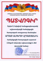 Եղեգիսի համայքապետարանի աշխատակազմի համայնքային ծառայության առաջատար մասնագետ Արտաշ Ալբերտի Արտաշյանը համայնքային ծառայության ոլորտում ունեցած անբասիր աշխատանքի և մեծ վաստակի համար արժանացավ պատվոգրի։